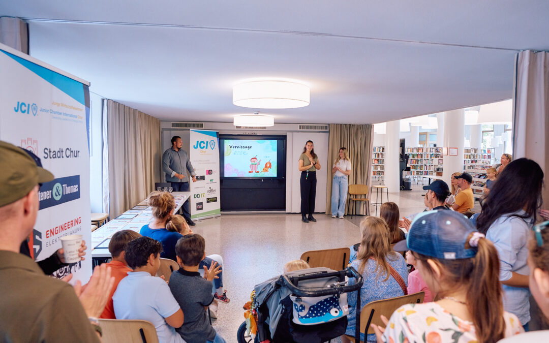 Am Sonntag, 7. September 2025, fand in der Stadtbibliothek Chur die Vernissage statt. Rund 50 Gäste nahmen daran teil, darunter Angehörige der Kinder, JCI-Mitglieder sowie öbentliche Partnerinnen und Partner. Die Stimmung war geprägt von Freude und Stolz über das gelungene Gemeinschaftswerk.